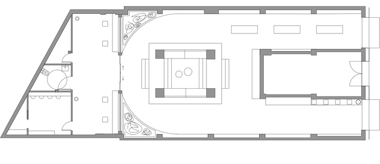Diseñamos un espacio moderno y relajado con una plataforma central para interactuar cómodamente con los productos. La tienda cuenta con dos accesos: uno para nuevos clientes y otro para compras rápidas de habituales.