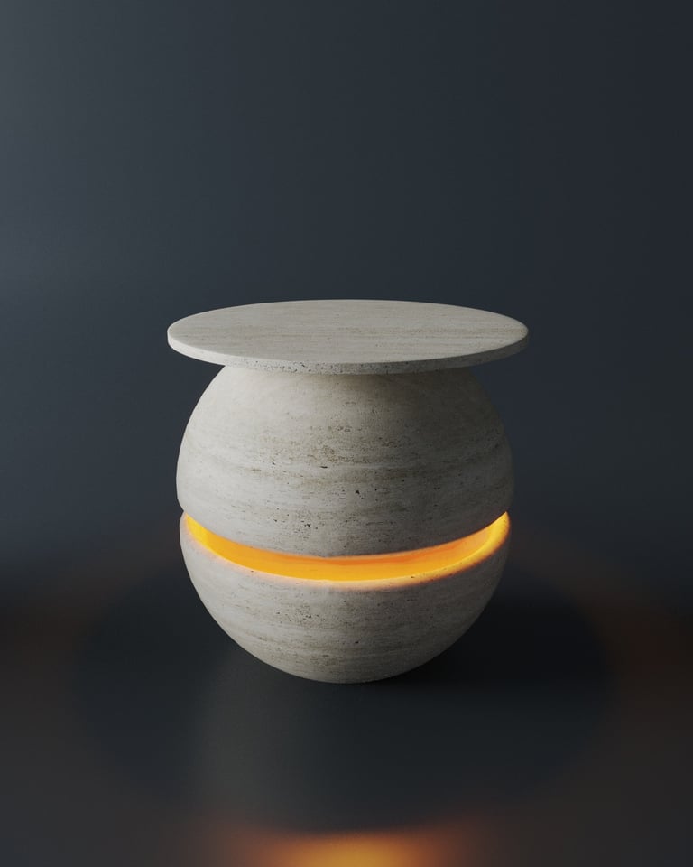Una lámpara que combina lo sólido y lo etéreo. Su forma esférica, casi escultórica, está dividida por una línea de luz cálida que libera un destello desde su interior.