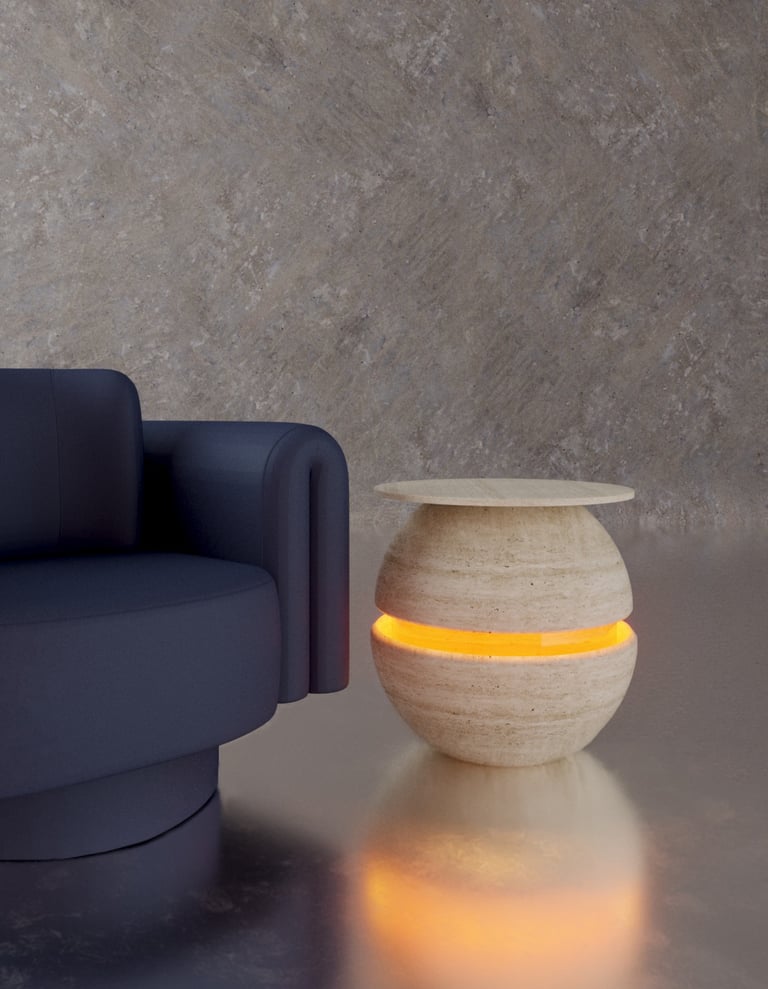 El contraste entre el material robusto y la suavidad de la iluminación crea un diseño que no solo ilumina, sino que también aporta calma y modernidad al espacio.