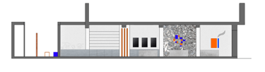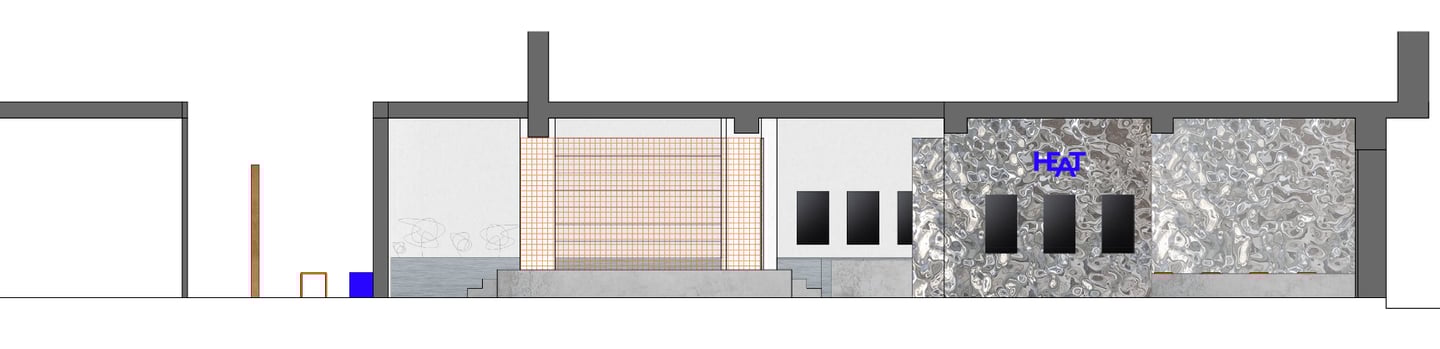 Se añadió un patio trasero para disfrutar de los productos y se integraron las zonas de servicio. Los tonos azules y metálicos aportan frescura, mientras que los acentos naranjas añaden calidez.
